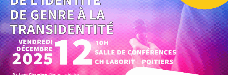 – Inscription en présentiel (places limitées) : Centre Hospitalier Henri Laborit à Poitiers https://my.weezevent.com/de-lidentite-de-genre-a-la-transidentite